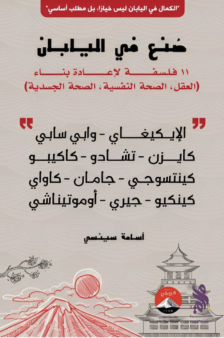 كتاب “صنع في اليابان: 11 فلسفة لإعادة بناء العقل والصحة النفسية” هو كتاب عربي للمؤلف أسامة سينسي، يقدم منهجاً نظرياً وعملياً لشرح وتطبيق الفلسفات اليابانية التي تعزز التوازن النفسي وتحسن العقل، مما يساعد القارئ على تحقيق حياة أفضل. يتناول الكتاب كيفية استلهام هذه الفلسفات لتحقيق التوازن في حياة القارئ، ويشمل آليات لتحسين الصحة النفسية.